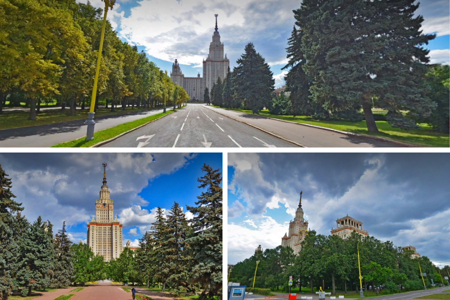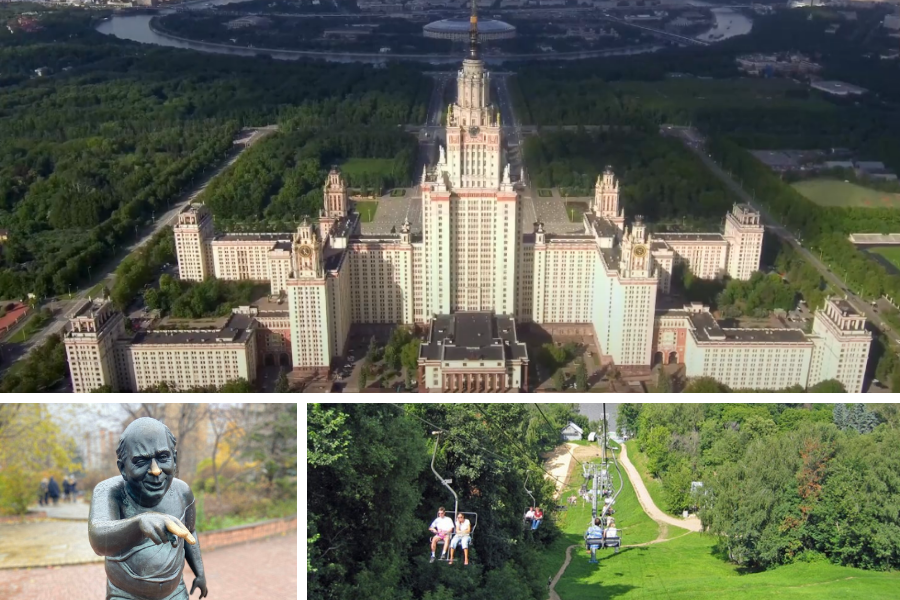 - Главное здание МГУ и ботанический сад МГУ.