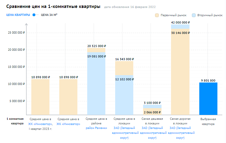 Этот район довольно востребован у московских девелоперов. На данный момент на novostroy.ru размещены 42 жилых комплекса в этой локации. Многие из них ещё строятся. Самые доступные предложения в ЖК «Инноватор». Здесь за лот площадью 21 кв. м просят 9,8 млн рублей.