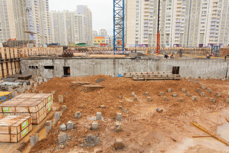 ЖК «Новокуркино»: 1-я секция - ведутся работы по забивке свай, 2-я секция - бетонирование фундамента