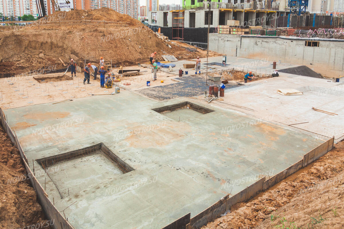 ЖК «Новокуркино»: I секция - ведутся работы по формированию фундаментальной плиты; II секция - монтаж технического этажа